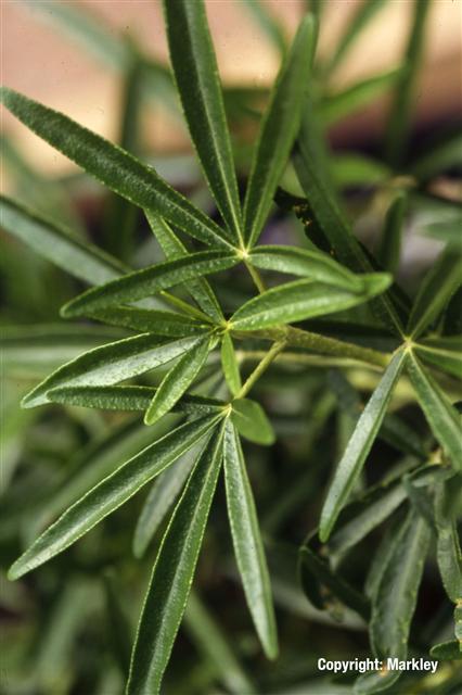 dreiteilig, Einzelblättchen auffallend schmal und länglich, bis 8 cm