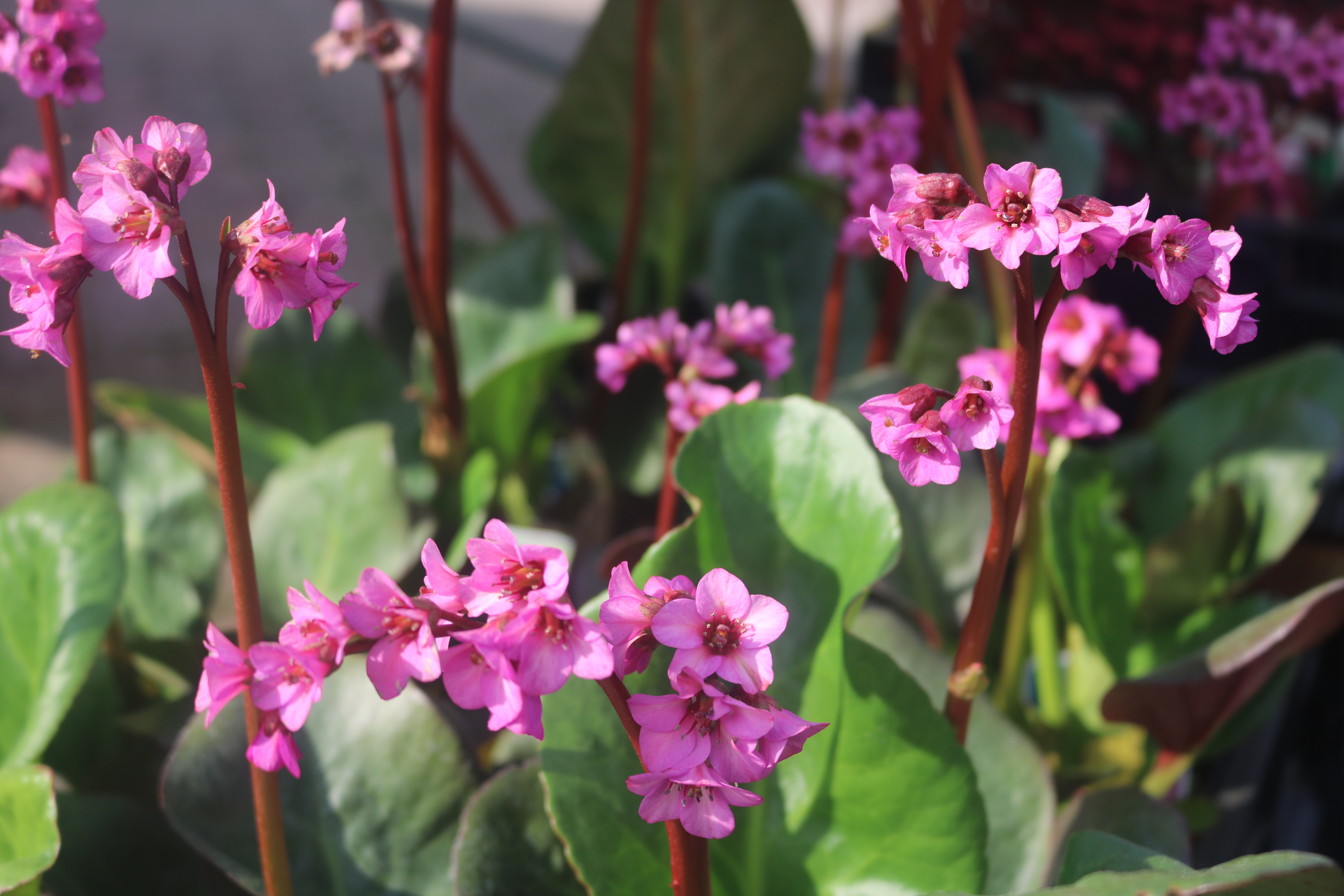 Flachwachsende Staude mit früher Blüte und auffallendem Laubschmuck