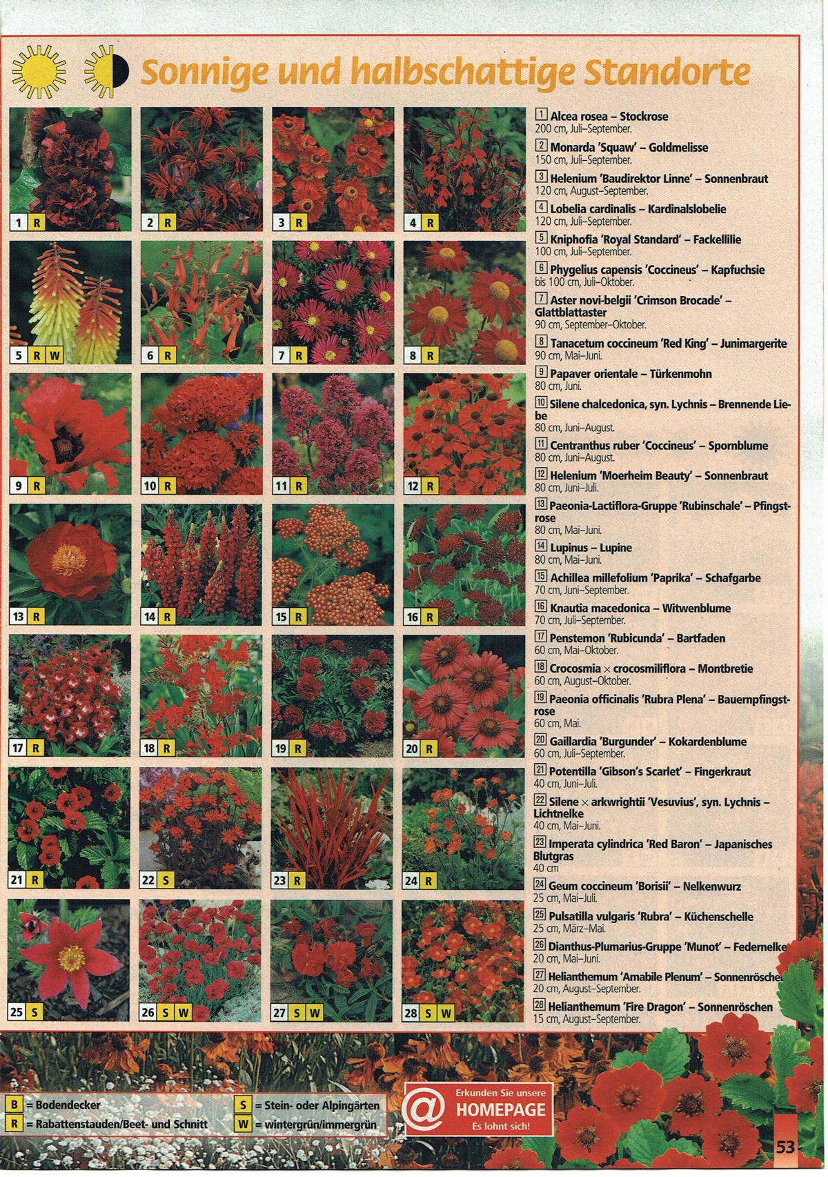natürlich können wir Ihnen in diesem Katalog keine erschöpfende Auskunft über alle Stauden und Gehölze geben, die wir Ihnen in unserer Gärtnerei anbieten. Unser Pflanzensortiment geht in Breite und Tiefe weit über das Übliche hinaus und ist an das hiesige Klima bestens angepasst. Wir führen eine reiche Auswahl an winterharten Stauden aller Art, Farnen, Gräsern und Bambussen, Rhododendron, Laub- und Nadelgehölzen, Obst und Rosen. Alle Pflanzen im einzelnen aufzulisten, die wir in unserer Gärtnerei selbst vermehren und kultivieren, würde ein ganzes Buch füllen. Deshalb kann auch der dickste Pflanzenkatalog kompetente Beratung beim und vom Gärtner nicht ersetzen. Denn die Pflanzenauswahl allein nach Geschmackskriterien sorgt noch nicht für dauerhaften Gartenspaß. Da gibt es knifflige Fragen zu lösen: Ist der Standort absonnig oder sonnenüberflutet? Der Boden lehmig oder sandig? Was paßt in einen Kübel?
