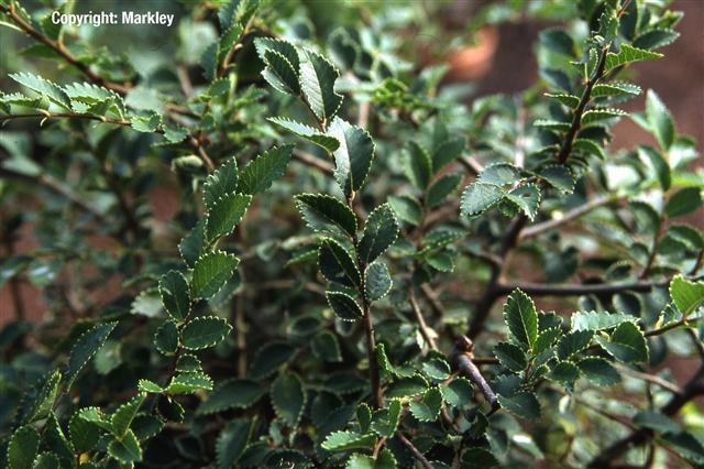Filigraner Zierstrauch mit weiß eingefassten Blättern
